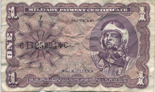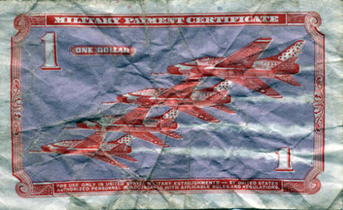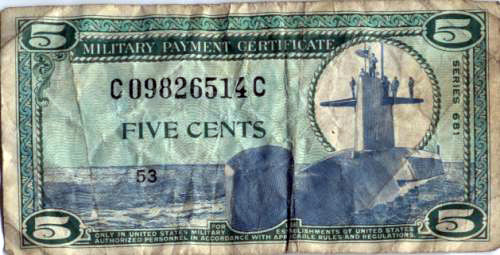use by servicemen overseas to spend rather than genuine greenbacks to