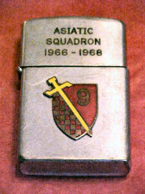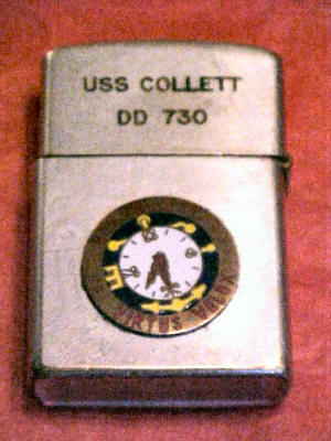 I ran across some of the lighters I collected while aboard the Collett. this is a pix of a Collett lighter showing the Desron 9 shield and the script "ASIATIC SQUADRON 1966-1968" (This is the lighter I carried while aboard-it must have lit a million Pall-Malls!).