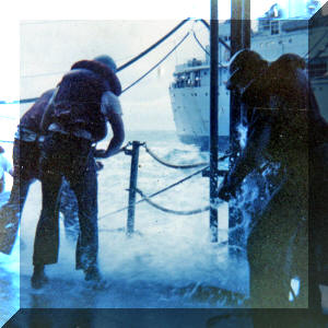 the cold. Shipmates are myself on the left, then to the right, Roy Habegger