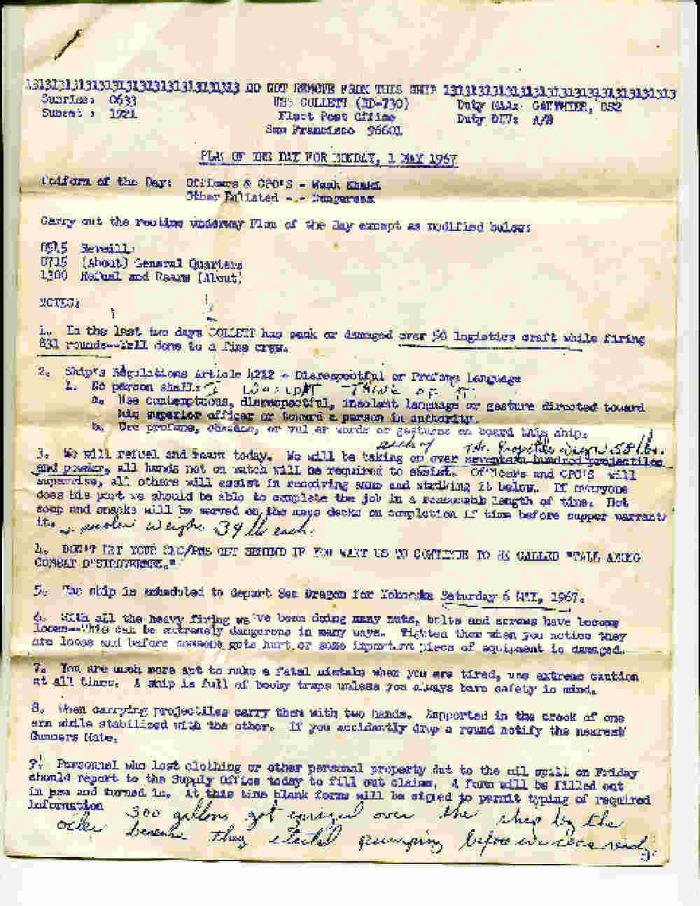 Hangar deck at sea. |