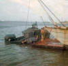 Picking up the LCM 6 in Danang after divers attached the slings, 1969.